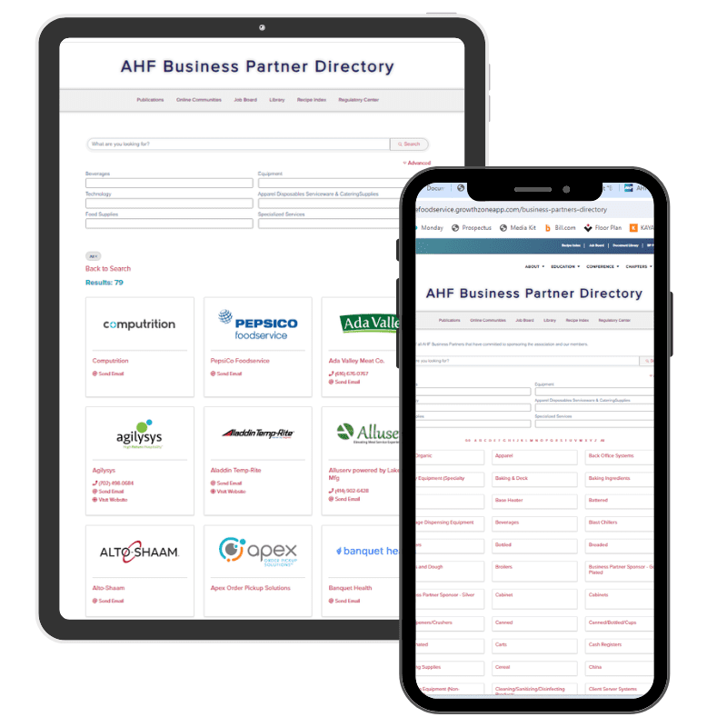 AHF's Business Partner Directory is one of our most utilized benefits. The Directory provides a listing of all AHF Business Partners that have committed to sponsoring the association and our members. It can be used in two formats, downloadable PDF or searchable online Directory.