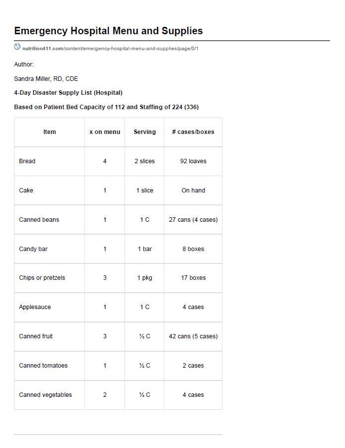 4-day disaster sample supply list.