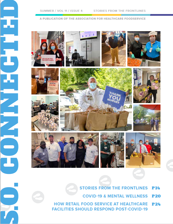 The fourth issue of volume 11 of S.O. Connected. Titled "COVID-19: Stories from the Front Lines" Feature articles: COVID-19 Stories from the Front Lines; COVID-19 & Mental Wellness; How Retail Foodservice at Healthcare Facilities Should Respond Post COVID-19.