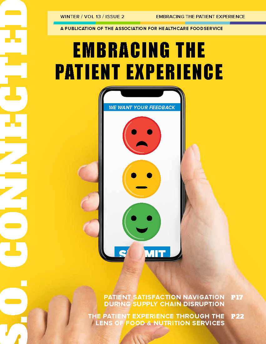 The second issue of volume 13 of S.O. Connected. Titled "Embracing the Patient Experience". Feature articles: Patient Satisfaction Navigation During Supply Chain Disruption; The Patient Experience Through the Lens of Food & Nutrition Services; Insights from AHF's Inaugural State of the Industry Report; Trends in Healthcare Foodservices to Enhance the Patient and Resident Experience