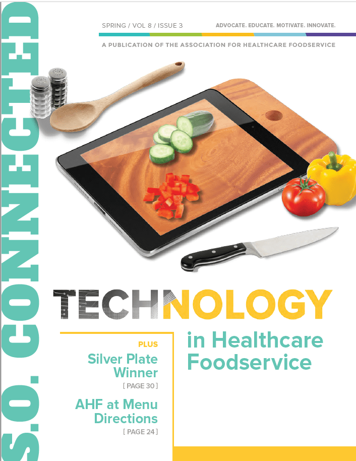 The third issue of volume 8 of S.O. Connected. Titled "Technology in Healthcare Foodservice" Feature articles: Improving your organizational health with technology; Silver plate award winner; AHF at menu directions.