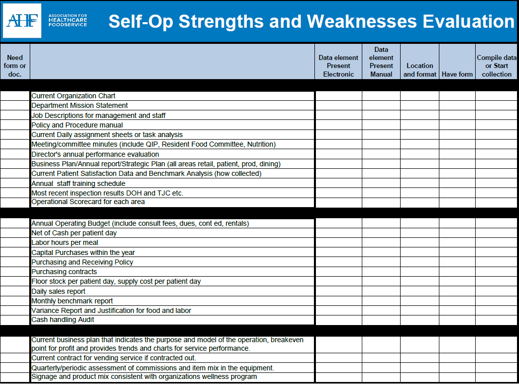Self-Operated Facility Strengths & Weaknesses Evaluation (SWOT)